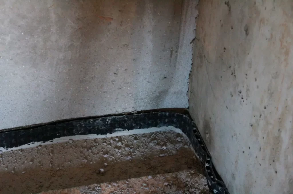 The first step was to roll out a double layer of Hydraway and insert it vertically, next to the foundation’s footing. The Hydraway is placed in this position as it is the lowest part in the house where water drains to. The Hydraway acts as a channel for the water to be drained out of the interior of the home.