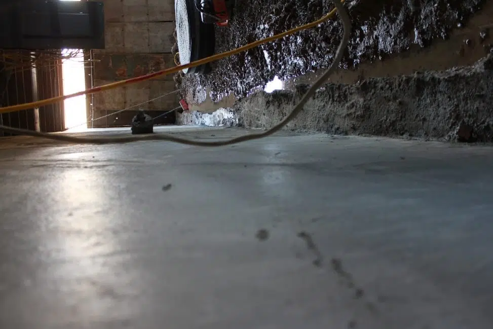 The final step of the waterproofing portion of the project was to pour the entire concrete floor, on top of the drainage system.